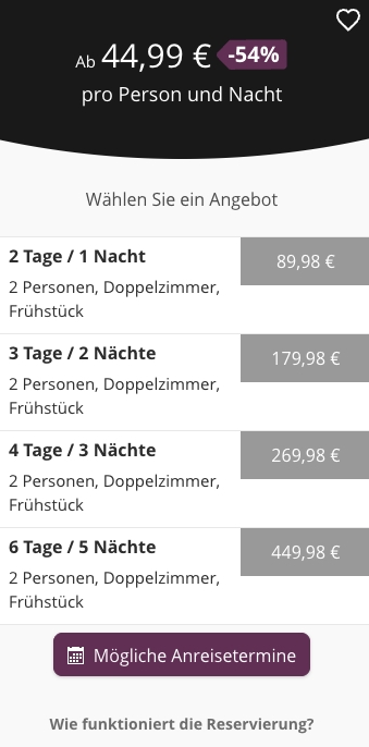 ⚠️ Die möglichen Anreisetermine könnt ihr ganz bequem bereits vor dem Kauf des Gutscheins prüfen.