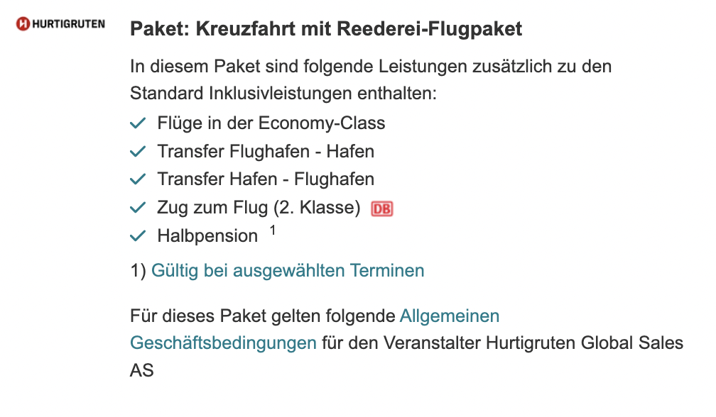 Bei e-hoi bekommt ihr gerade echt geniale Kreuzfahrt-Pakete inkl. Flüge, Transfers von und zum Hafen und dem Zug-zum-Flug in Deutschland. 🙌 In unserem Beispiel kostet das Paket mit Flügen nach Norwegen und Halbpension etc. sogar weniger als nur die Kreuzfahrt! Und es wird noch besser: Je nach Kabinenkategorie könnt ihr sogar noch bis zu 600€ Bordguthaben abstauben!