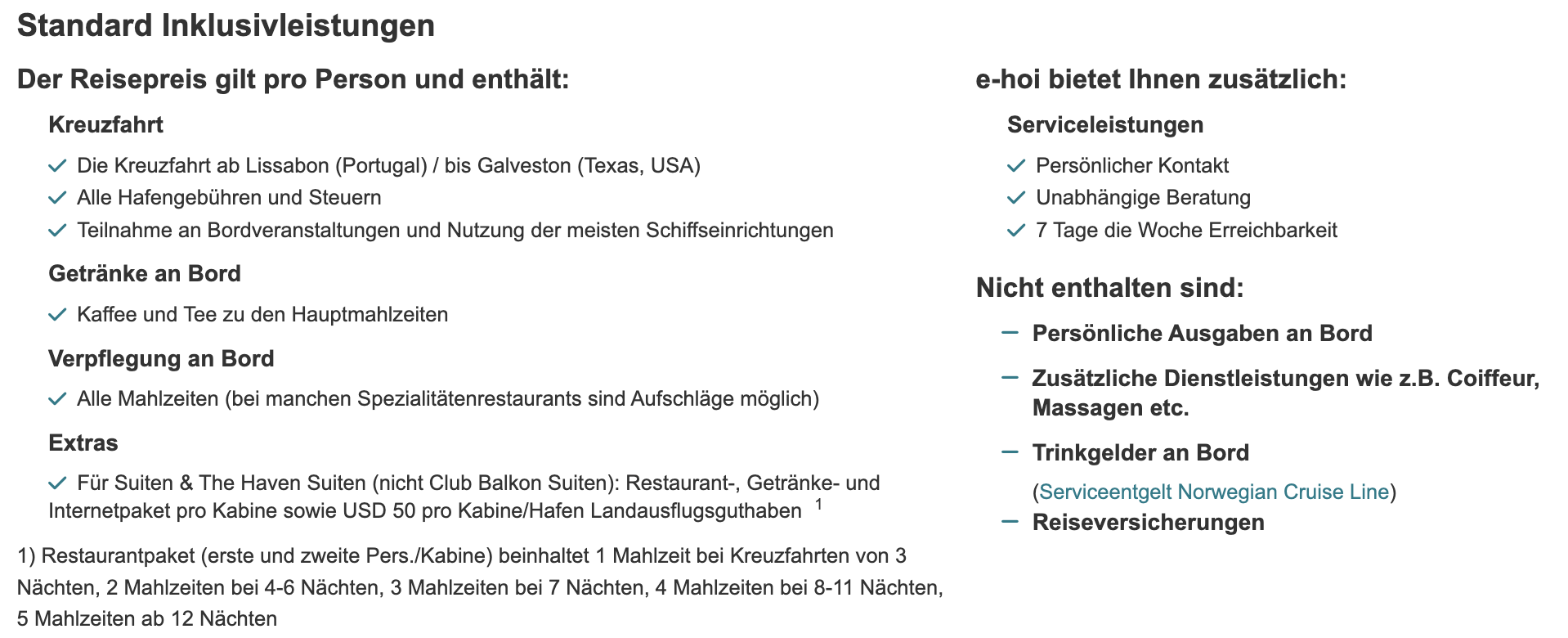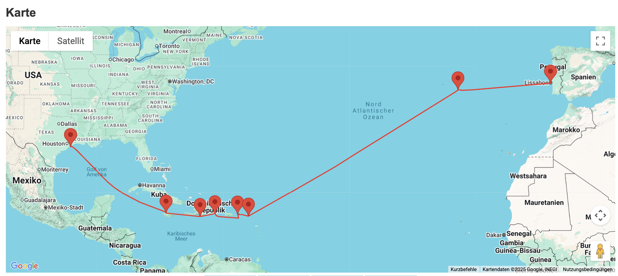 Das geniale, moderne und familienfreundliche Schiff startet in Lissabon, nimmt Kurs auf die Azoren, dann weiter in die Karibik und kommt final im Cowboy-Country Texas zum Ende seiner Fahrt! Eine tolle Route! Doch am spannendsten ist der Preis! Unfassbare 373 € sind selbst für erfahrene Schnäppchen-Piraten eine krasse Nummer! Das sind nur 23 Euro am Tag! Inkl. Vollpension!