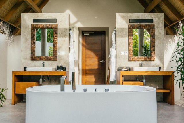 Du wohnst entweder direkt am Strand in einer gemütlichen Beach Villa, wo du morgens direkt schon den Sand unter den Füßen spüren kannst, oder du genießt den Blick aus dem Whirlpool deiner Water Villa über den Indischen Ozean 😍. Wie soll man sich da entscheiden?