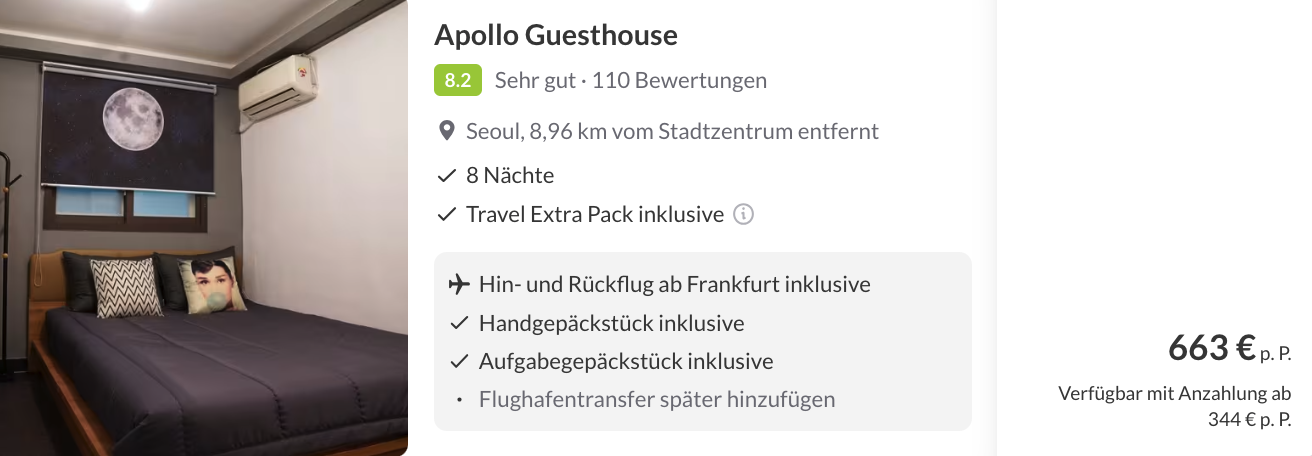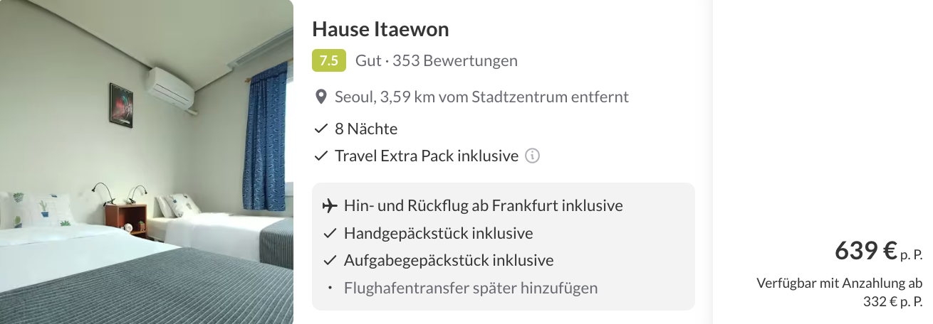 Es werden euch neben klassischen Hotels auch die in Südkorea beliebten Guesthouses angezeigt, welche teilweise Gemeinschaftsbäder haben - achtet bei der Buchung drauf