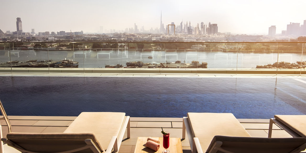 Eine Dachterrasse, ein Infinity-Pool, Bali-Betten und eine gigantische Aussicht über die Skyline von Dubai - das erwartet dich im 5-Sterne-Luxushotel "Al Bandar Rotana - Creek" direkt am gleichnamigen Dubai Creek. ✨ ⭐️