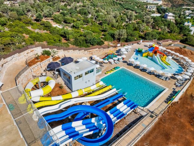 Nonstop-Action: Ein großzügiger Aquapark sowie Kinderbecken warten darauf, den Kids die Langeweile zu rauben 🥳