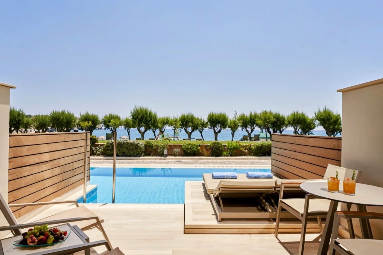 Das Atlantica Imperial Resort ist ein luxuriöses 5*-Resort an der Ostküste der griechischen Insel Rhodos. Das Hotel verfügt über eine breite Palette an Annehmlichkeiten, einschließlich eines privaten Strandes, mehrerer Pools, eines Wellnesscenters, Fitnessraums, Restaurants und Bars. Die Zimmer sind elegant eingerichtet und bieten mit manchen Kategorien ebenfalls einen direkten Poolzugang oder auch einen Privatpool. Das Resort ist ideal für Paare und Familien, die eine entspannte Atmosphäre, erstklassigen Service und hochwertige Annehmlichkeiten suchen.