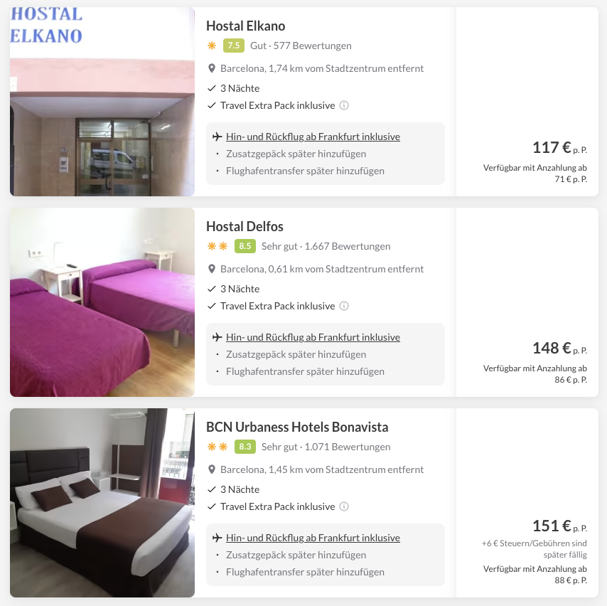 Es ist keine bestimmte Unterkunft vorgefiltert, sondern ihr seht die, während eurer Abfrage, preiswertesten Unterkünfte mit guter Lage und guten Bewertungen 🤩