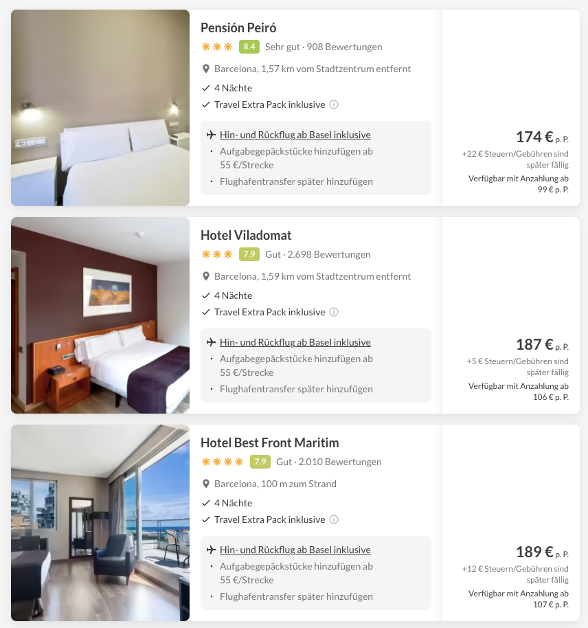 ℹ️ Bei fast allen Fluggesellschaften ist standardmäßig nur noch ein kleines Handgepäckstück inkludiert. In der Flugauswahl seht ihr das inkludierte Gepäck, weiteres Gepäck könnt ihr im Buchungsprozess dazubuchen.