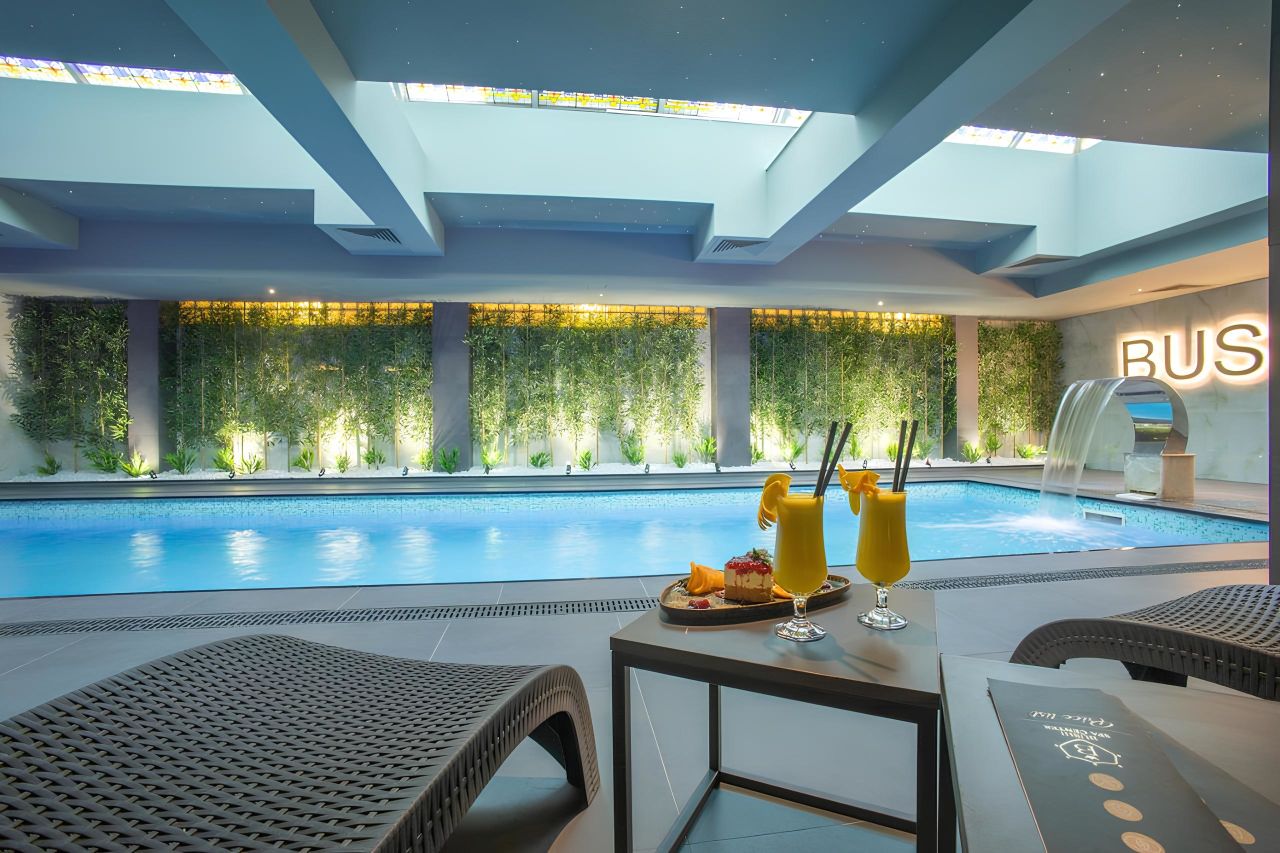 Neben der perfekten Lage bietet euch das Hotel auch einen Innenpool, Saunen, ein Dampfbad und Massagezimmer!