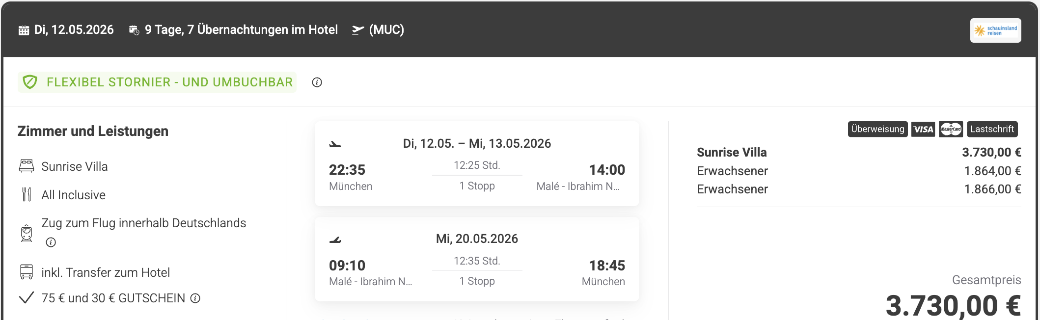(Diese Preise beziehen sich auf unser ausgewähltes Reisebeispiel und können an anderen Terminen variieren)