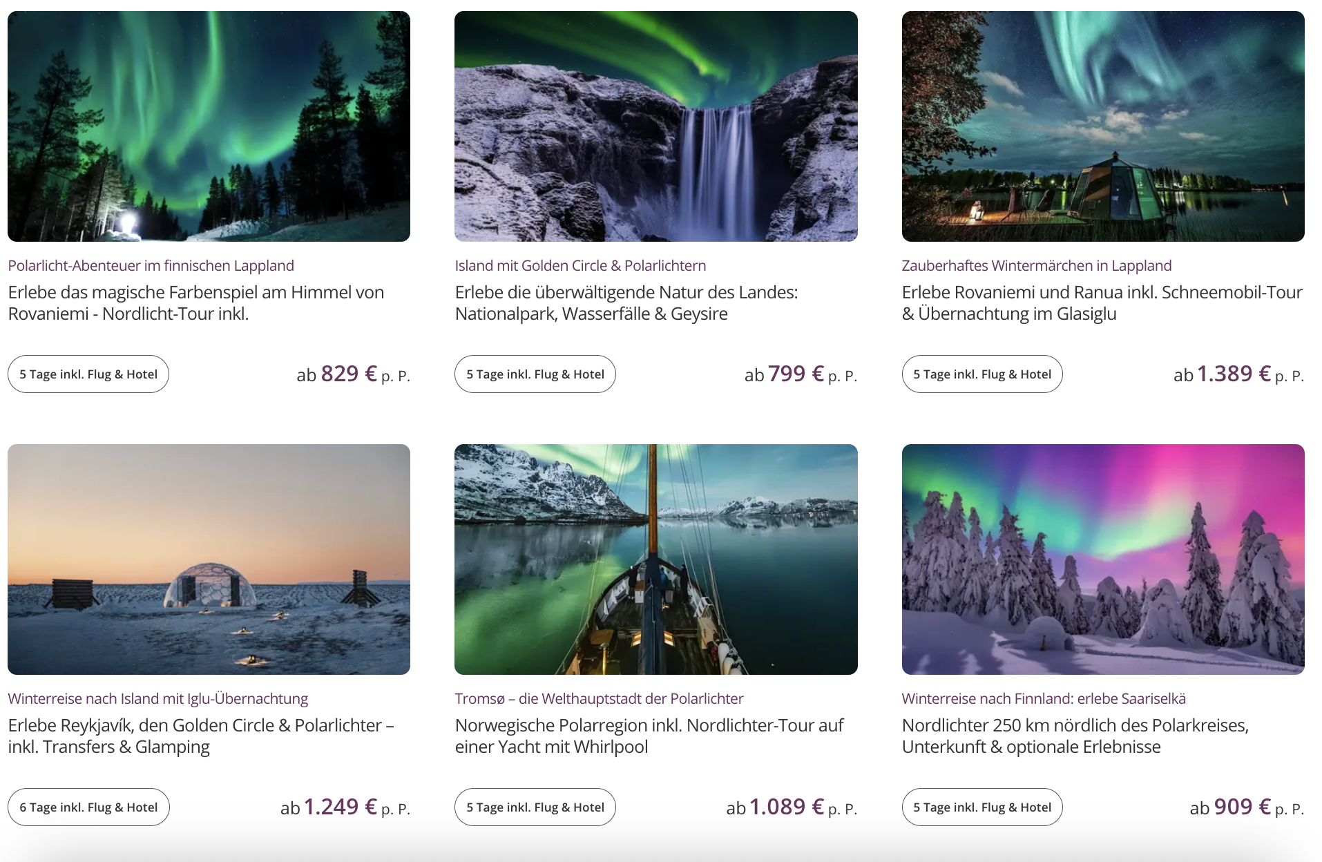 💶 Aktuell bekommt ihr die 5-tägige Reise inkl. 60 € Rabatt mit dem Code UP-POLARLICHTER-60 ab 799 € pro Person.