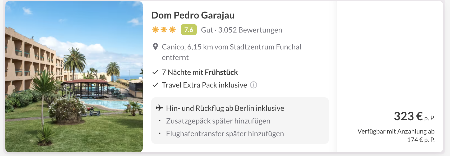 ℹ️ Alle hier genannten Reisepreise sind mit der Veröffentlichung des Deals verfügbar und buchbar, jedoch haben wir keinen Einfluss darauf, wann und wie stark sich ein Reisepreis verändern kann. Wenn die Nachfrage besonders hoch ist, kann der Flugpreis sich besonders schnell verändern und Unterkünfte ausgebucht werden.