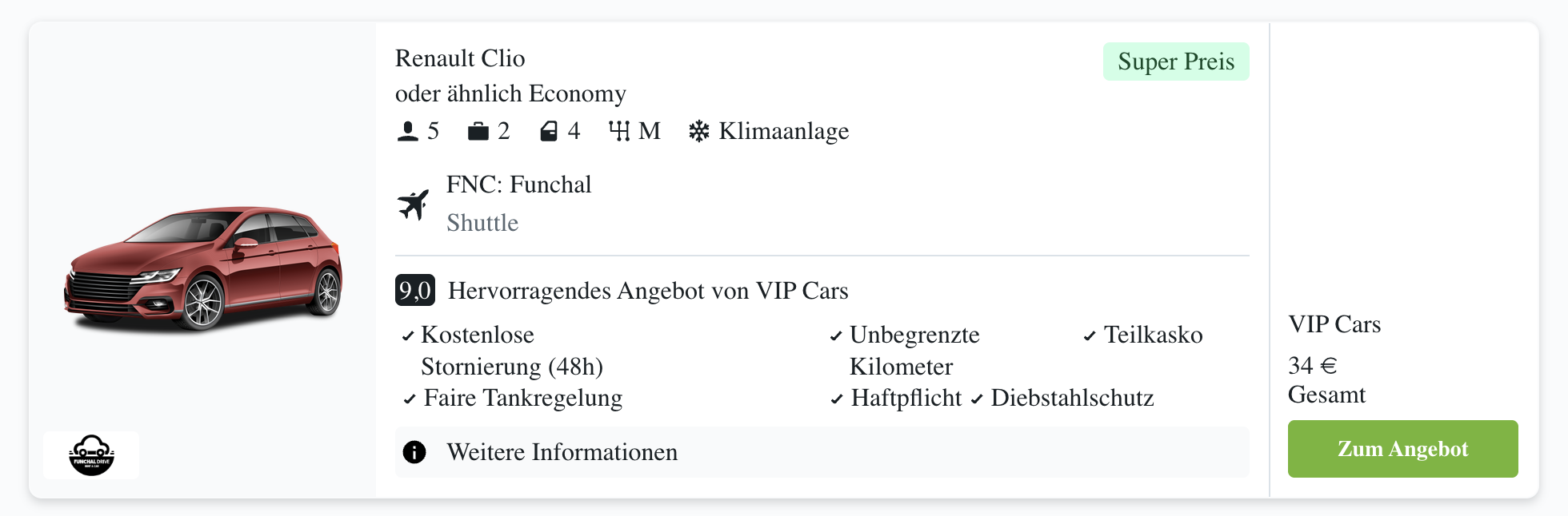 Wollt ihr flexible sein, bucht ihr euch einfach einen Mietwagen. Die Preise starten hier aktuell schon bei kleinen 34€, also 17€ p.P. für die gesamte Woche!!