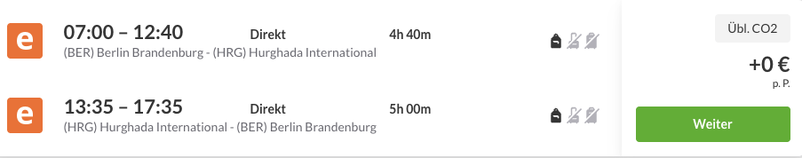 Nach Weiterleitung könnt ihr den Abflughafen, die Flugzeiten und das Datum nach euren Wünschen anpassen.