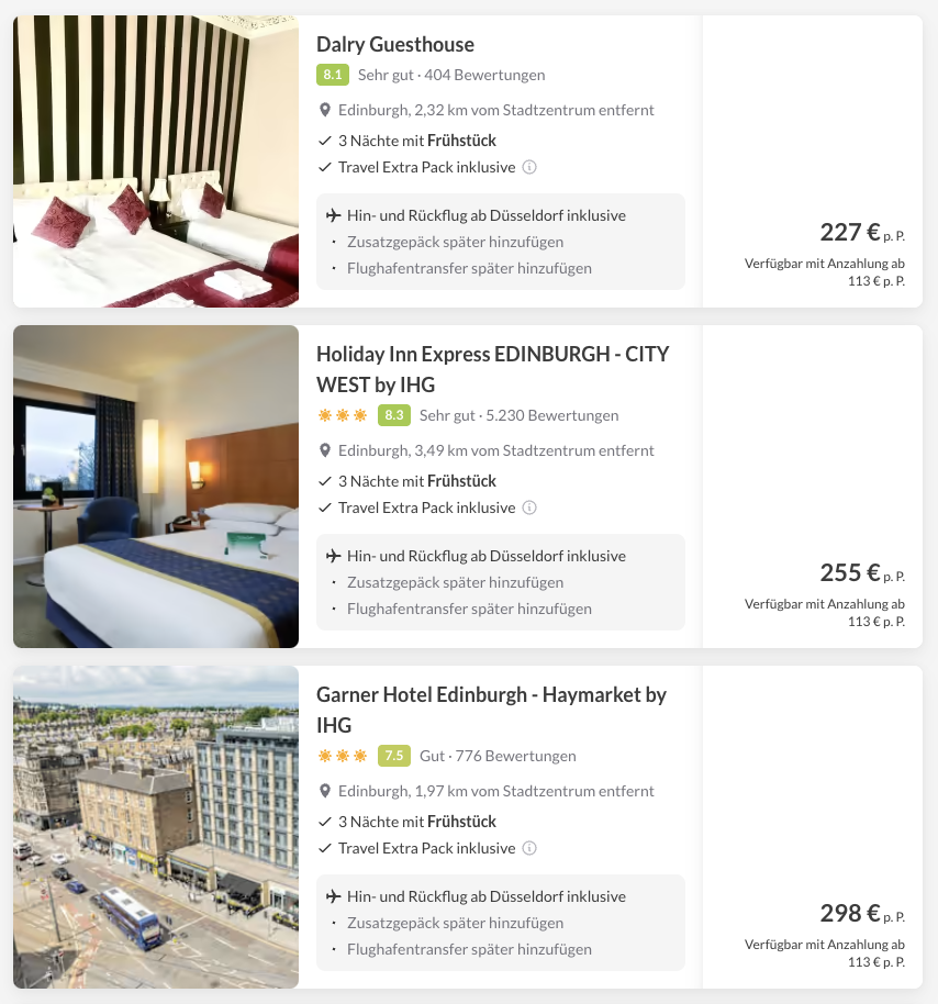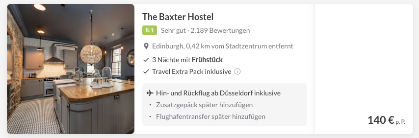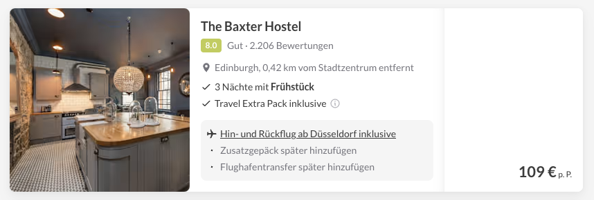 Es ist keine bestimmte Unterkunft vorgefiltert, sondern ihr seht die, während eurer Abfrage, preiswertesten Unterkünfte im Stadtzentrum mit guten Bewertungen 🤩