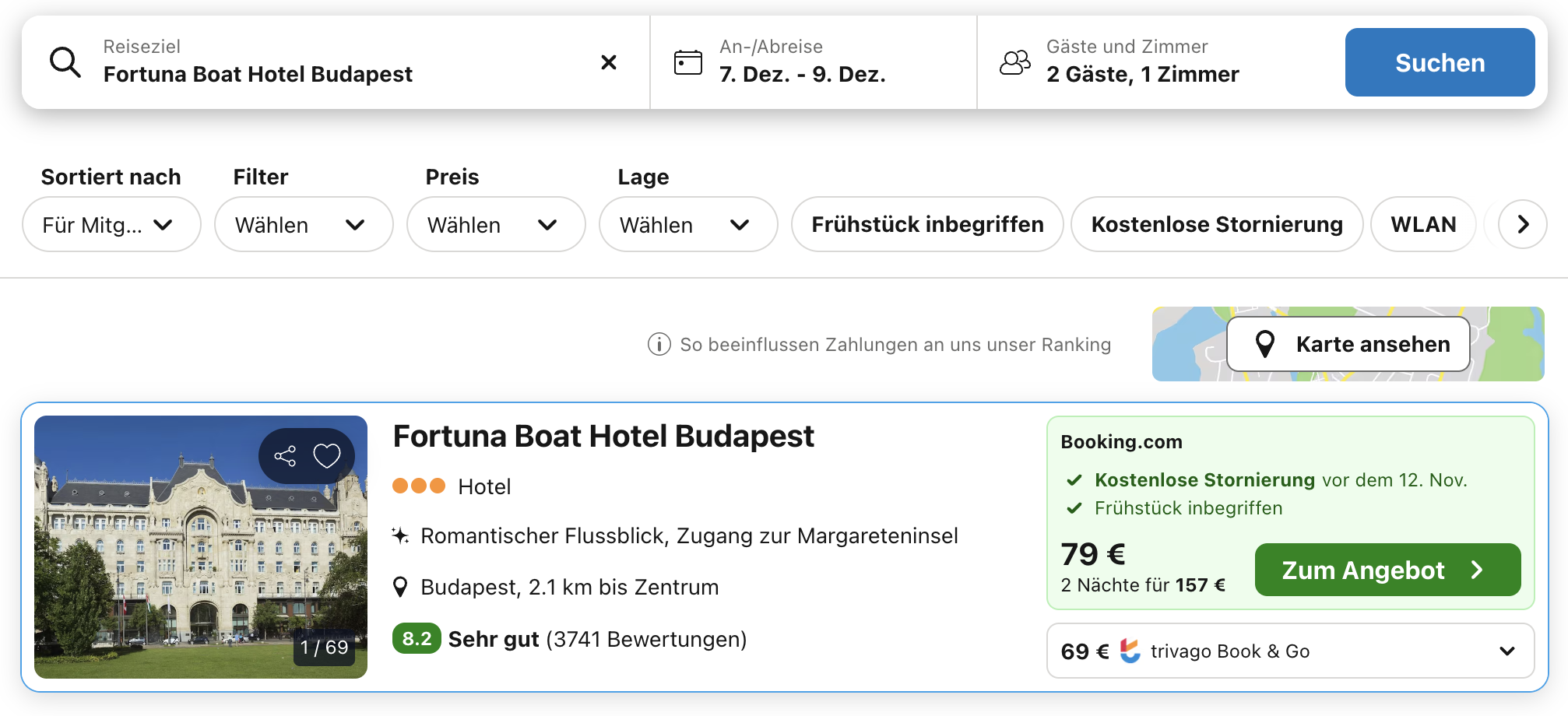 An unsrem Beispieltermin konnten wir den besten Preis bei trivago Book & Go finden.