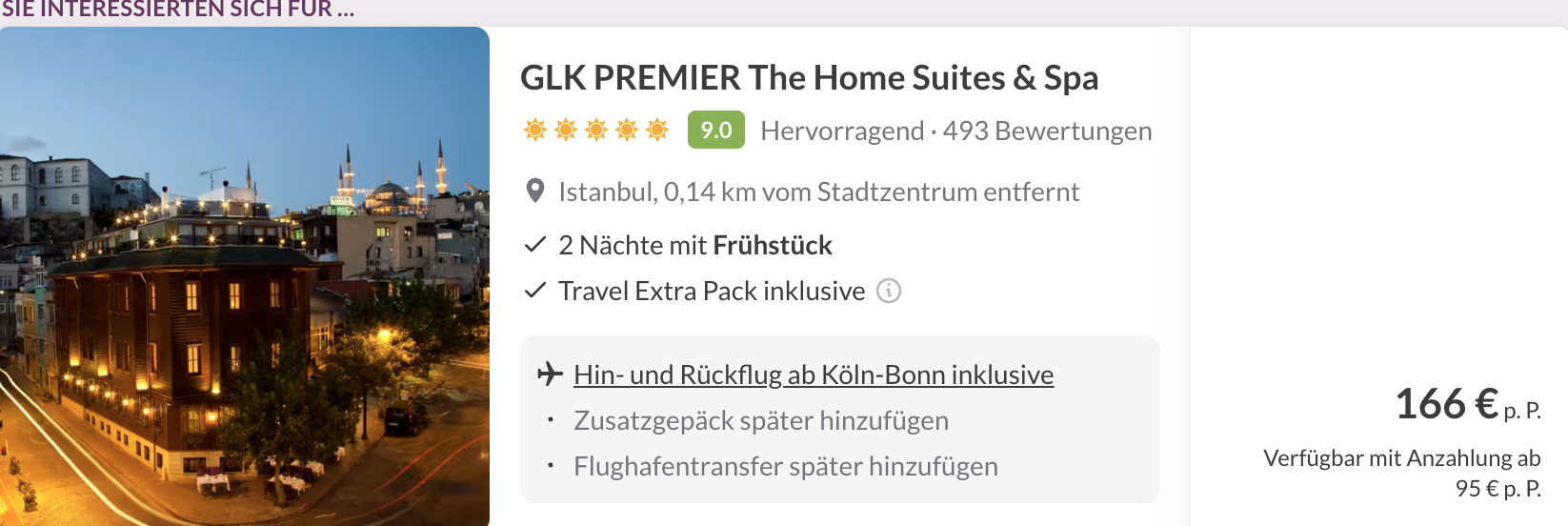viel günstiger wird ein Citytrip nach Istanbul nicht, vor allem nicht in einem zentralen 5* Hotel mit Flügen und Frühstück. Für 2 Nächte zahlt ihr gerade mal ab 142 € p.P. 🔥