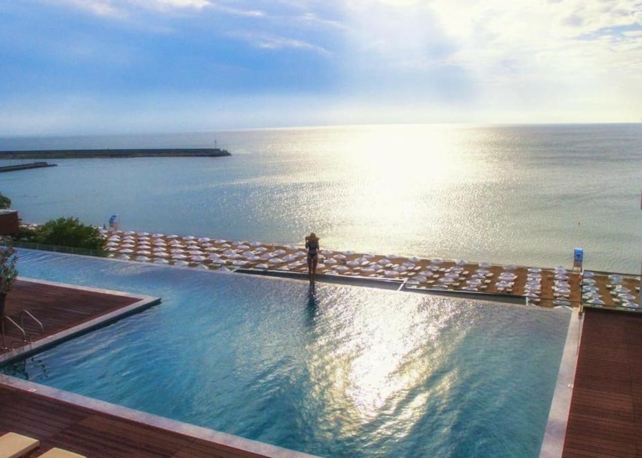Das Hotel liegt nur wenige Schritte von einem privaten Strandbereich entfernt, der kostenfreie Sonnenliegen und Sonnenschirme bietet. Das Hotel befindet sich in einer ruhigen Gegend des beliebten Ferienorts Goldstrand. Zu den Annehmlichkeiten gehören ein Kinderbecken mit Rutsche sowie ein beheizter Innenpool mit einem gläsernen Dach. Weitere Einrichtungen umfassen einen Infinity-Pool auf dem Dach mit einer Panorama-Sonnenterrasse sowie ein modern ausgestattetes Fitness-, Wellness- und Spa-Center mit luxuriösen Behandlungen. Massagen, Balneotherapie, Schlamm- und kosmetische Anwendungen werden ebenso angeboten wie Aktivitäten- und Entspannungsprogramme.
