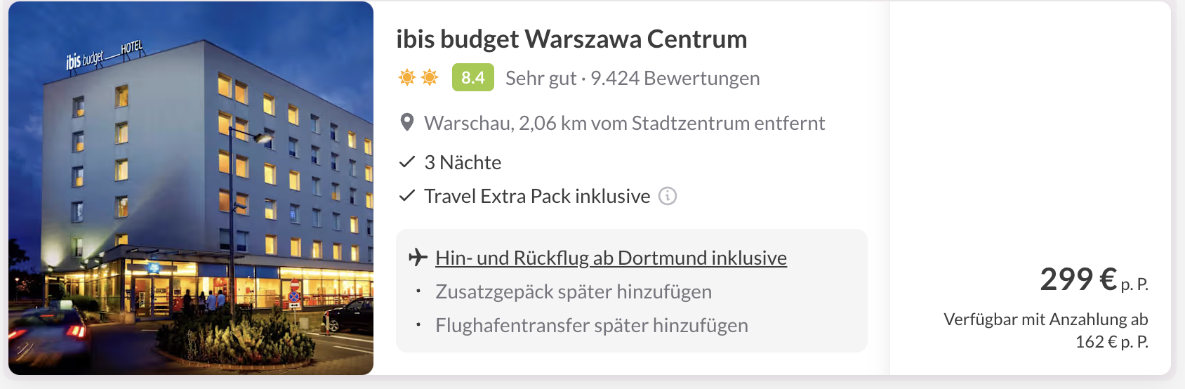 Es geht über Silvester nach Warschau, wo ihr in unserem Beispiel für 3 Nächte im top ibis Hotel inkl. Direktflügen gerade mal 299€ pro Person bezahlt – echt genial für Silvester!!