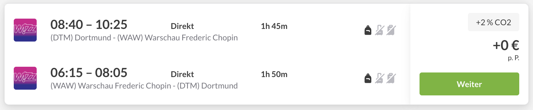 Je nach Abflugdatum und Abflughafen variieren die Preise enorm. Checkt also einfach am besten eure Wunschdaten ab. Ab folgende Flughäfen könnt ihr täglich direkt nach Warschau fliegen: