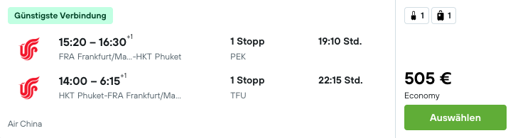 Mit der geschickten Kombination aus Flugsuche und unserer Hotelsuche sind in der Vorsaison auf Phuket derzeit außergewöhnlich gute Preise möglich. Besonders die Flugkosten sind im Vergleich zu den letzten Jahren deutlich gesunken. Für einen moderaten Aufpreis könnt ihr sogar mit Airlines wie Etihad ab Frankfurt oder München bzw. mit Qatar Airways ab Berlin fliegen. Probiert einfach euren Wunschabflughafen und eure Reisedaten aus – es lohnt sich.