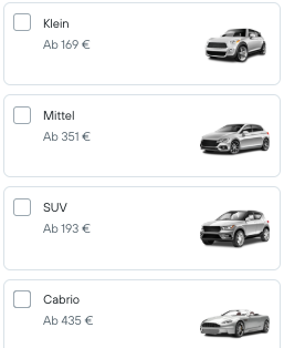 In unserer Mietwagen-Suche bekommst du im o.g. Zeitraum den Mietwagen ab 169 Euro bzw. 84,50 Euro pro Person.