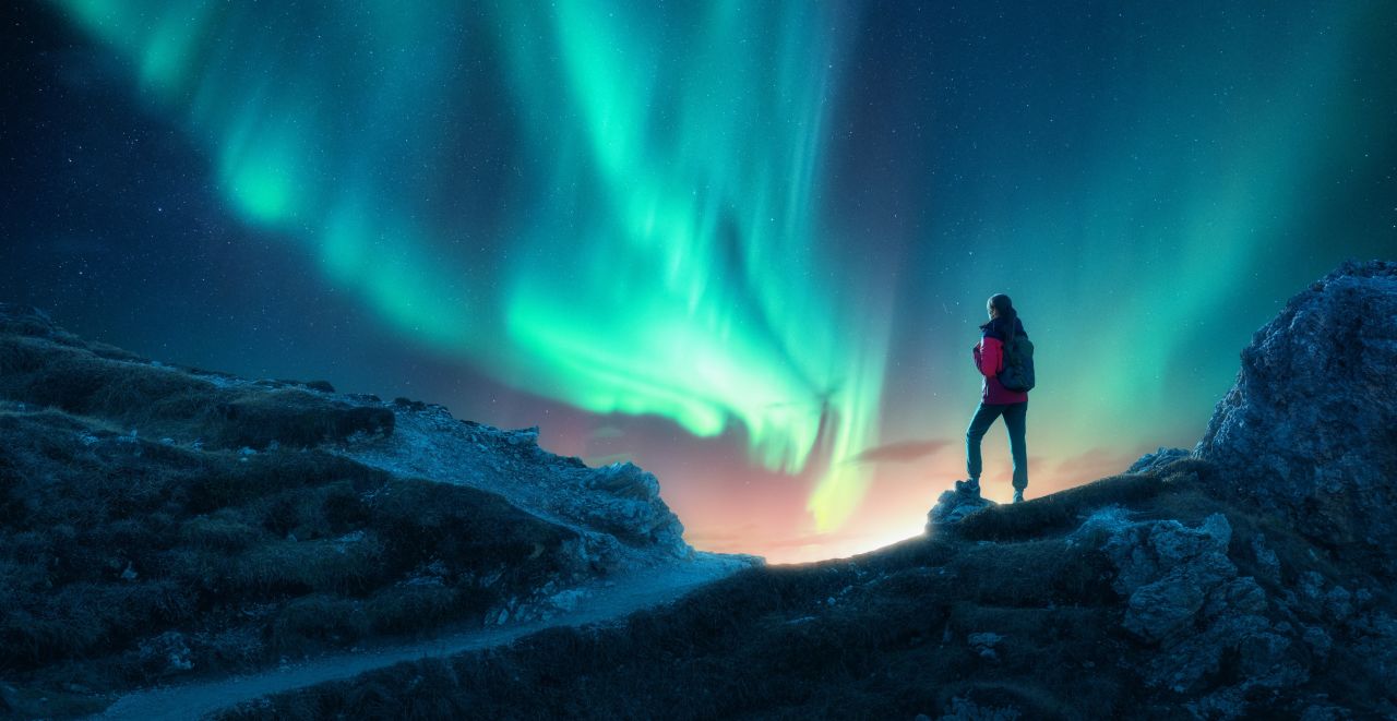 Die tanzenden Nordlichter siehst du am wahrscheinlichsten zwischen November und März und werden durch elektronisch geladene Teilchen, die durch Sonnenstürme in unsere Atmosphäre gelangen, verursacht. 🧑🏫
