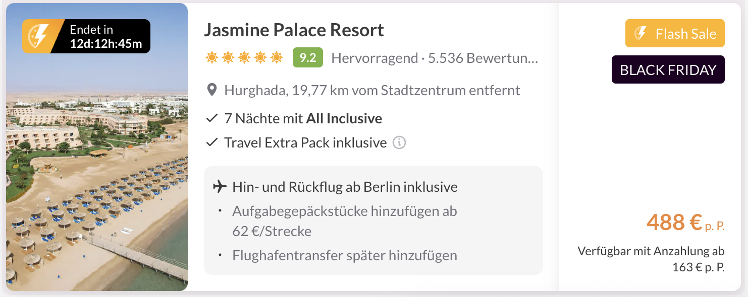 die Black Week steht vor der Tür und damit auch krasse Flash Sales. So bekommt ihr hier gerade super günstige Last Minute Preise in Ägypten.