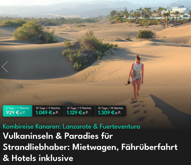 Mit dem Gutscheincode "UP-KANAREN-60" schenken wir dir 60 Euro auf deine Buchung, damit kannst du den Reisepreis von 929 Euro auf 899 Euro pro Person reduzieren. Der Gutschein gilt nur bei Buchung und Einlösung bis zum 28. September 2025. 😎