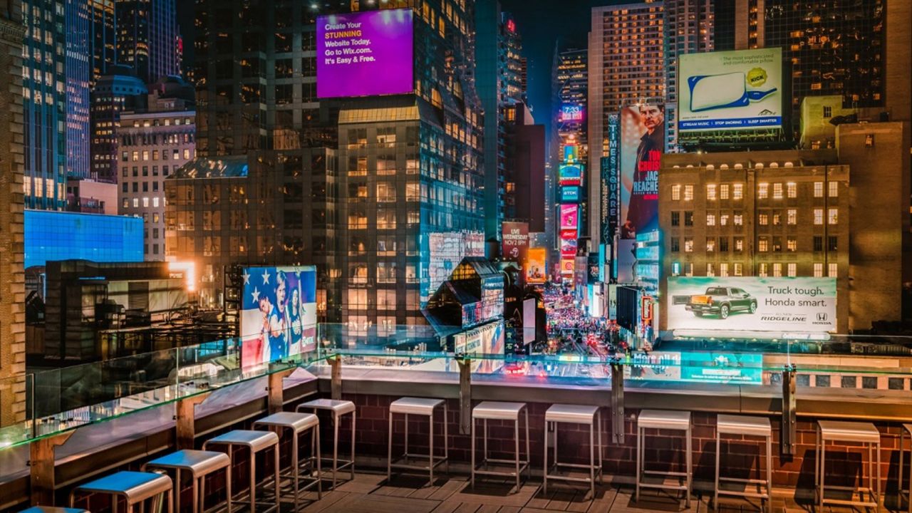 Irre! Mir war nicht mal bewusst, dass es sowas in New York gibt! Also ja, am Times Square hat es viele Hotels, aber so eine krasse Terrasse mit diesem Ausblick hab ich noch nie gesehen.