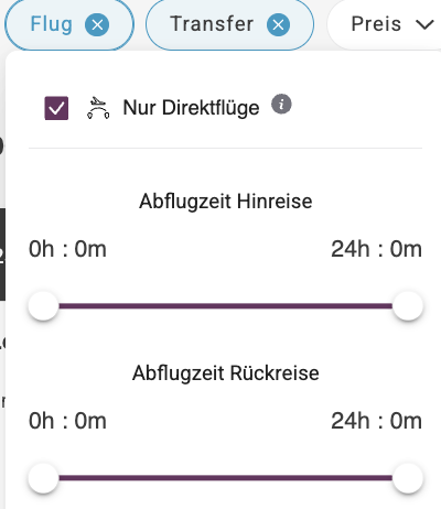 ⏰ Flugzeiten anpassen: Ihr habt ein tolles Angebot gefunden, nur die Flugzeiten passen euch so gar nicht? Dann nutzt den Filter zur Flugzeiten-Anpassung: