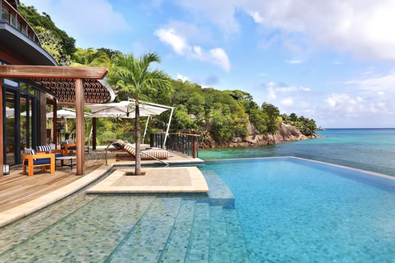 Das 5* Resort liegt auf der Hauptinsel Mahé und direkt am Meer, an dem dank der typischen Felsen an den kleineren Stränden und Buchten auch pures Seychellen-Feeling aufkommen kann. Wer schnorcheln möchte, kann sich auf eine spannende Unterwasserwelt dank vorgelagertem Riff freuen.