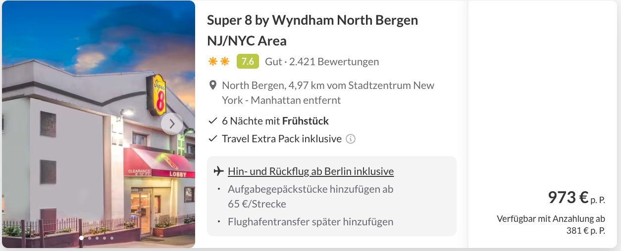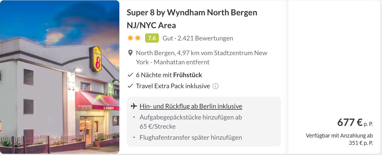 ℹ️ Siehst du einen anderen Preis als 677 Euro? Klick dich ins Angebot weiter bis zur Flugauswahl, dort kannst du meistens günstigere Flüge auswählen, der den Gesamtpreis sinken lässt.