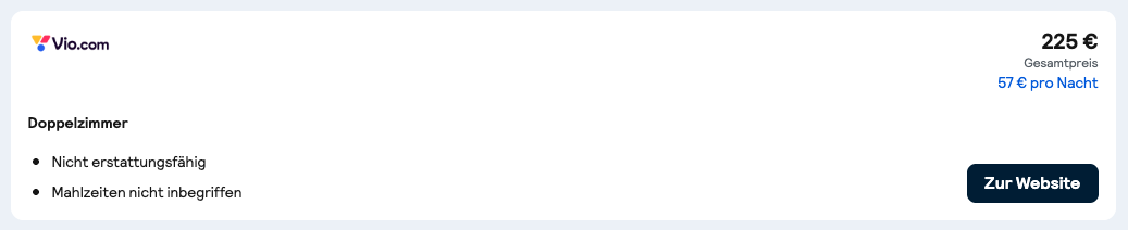 An unserem Beispieltermin konnten wir den besten Preis bei Vio finden. Klickt bei Skyscanner also auf "Zur Website" und lasst euch direkt dorthin weiterleiten.