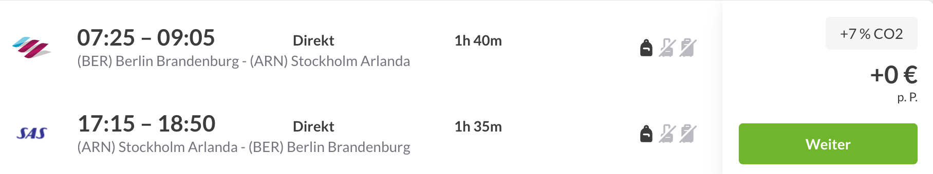 Geflogen wird mit Eurowings und SAS. Ihr fliegt morgens hin und am Abend zurück. Perfekt, um möglichst viel Zeit vor Ort zu verbringen. Im Buchungsprozess könnt ihr auch Gepäck dazu buchen.