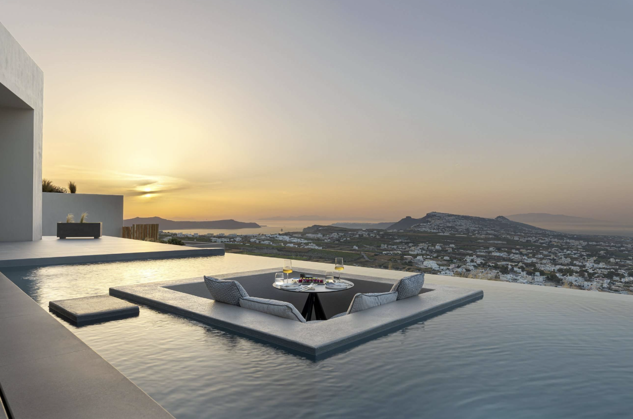 Tauche ein in das ultimative Luxus-Erlebnis in der Infinity Pool Lounge, wo der atemberaubende Panoramablick auf die Ägäis auf den Himmel trifft. Genieße die köstlichen Aromen der Nikkei-Küche, während du die atemberaubende Aussicht genießt.