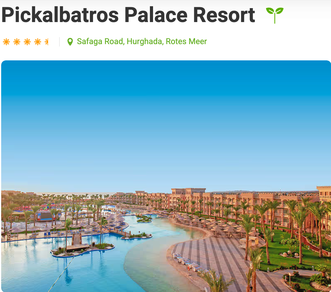 Das mit 5 Sterne Hotel Pickalbatros Palace Resort in Hurghada liegt direkt am hoteleigenen Sandstrand und nur ca. 10 km vom Flughafen (HRG) entfernt. Es wurde 2023 renoviert und bietet 621 Zimmer in 3 Hauptgebäuden auf 72.000 qm Außenfläche. Mit insgesamt 7 Restaurants und 8 Bars sowie einem großen All-Inclusive-Angebot ist es ideal für einen erholsamen und abwechslungsreichen Urlaub. Besonders hervorzuheben sind die umfangreichen Wasserattraktionen und Familienfreundlichkeit.