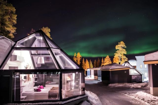4,5 oder 7 Nächte in Lappland mit Polarlicht Schneemobil-Safari & Übernachtung im Glasiglu-Resort