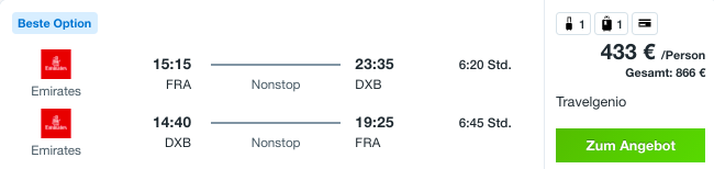Der Preis von 398 Euro pro Person ist schon deshalb so krass, weil ihr allein für die Flüge 433 Euro zahlen müsstet, wenn ihr sie einzeln buchen würdet! Das heißt, ihr bekommt die 7 Nächte im 4-Sterne-Hotel, das tägliche Frühstück, den Hoteltransfer und die An- und Abreise mit der Bahn ab eurem nächsten Bahnhof quasi geschenkt.