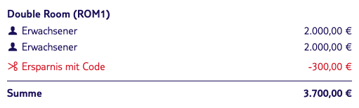 = 1.850 Euro pro Person (zuletzt vor 1 Woche noch 1.950 Euro)