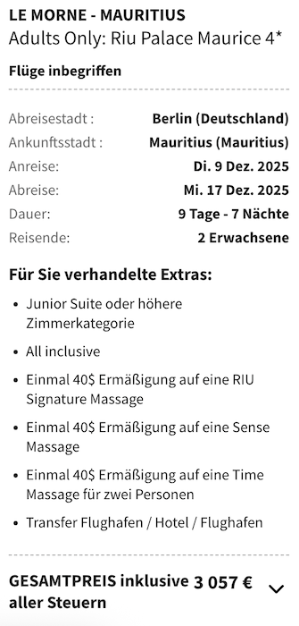 1 Woche im 4⭐ RIU Palace Mauritius in der Junior Suite mit All Inclusive, Flügen & Transfers 🤩