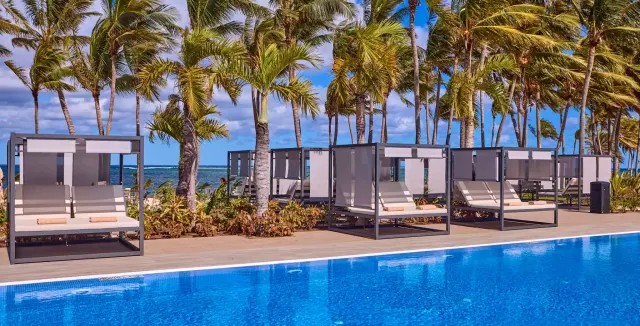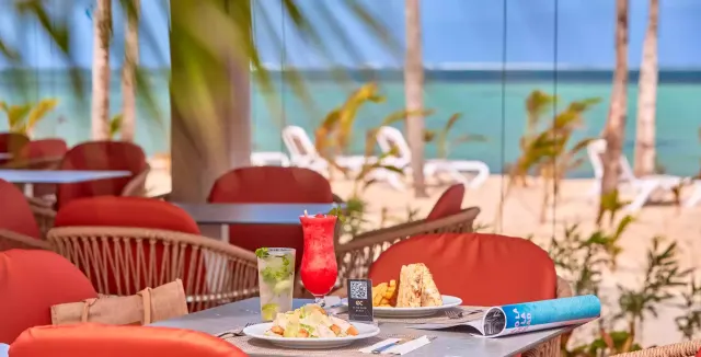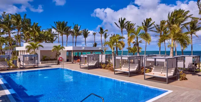 Kulinarisch erwartet euch eine beeindruckende Vielfalt: moderne Fusionsküche, authentische japanische Spezialitäten, aromatische Grillgerichte oder exotische indische Küche im benachbarten RIU Turquoise. Dazu laden drei Außenpools mit Meerblick, eine Swim-up-Bar und das legendäre RIU-Serviceerlebnis zum Genießen und Abschalten ein – herzlich, professionell und bis ins Detail durchdacht.