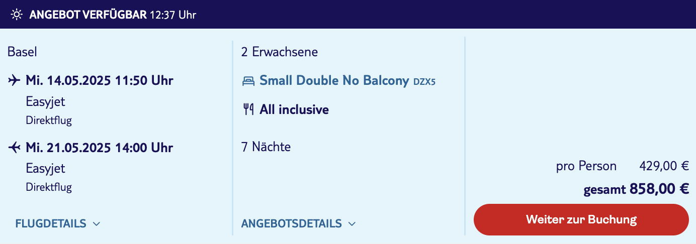 Alle hier genannten Reisepreise sind mit der Veröffentlichung des Deals verfügbar und buchbar, jedoch haben wir keinen Einfluss darauf, wann und wie stark sich ein Reisepreis verändern kann. Wenn die Nachfrage besonders hoch ist, kann der Flugpreis sich besonders schnell verändern und Unterkünfte ausgebucht werden.