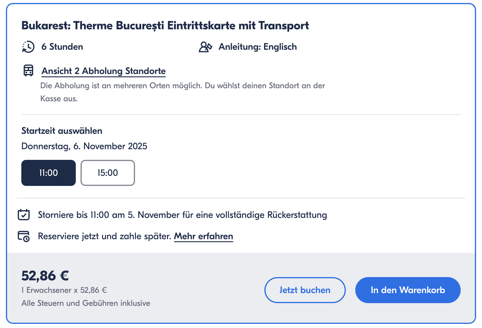 Für das den Ausflug zur Therme zahlt ihr 52,86 € pro Person.