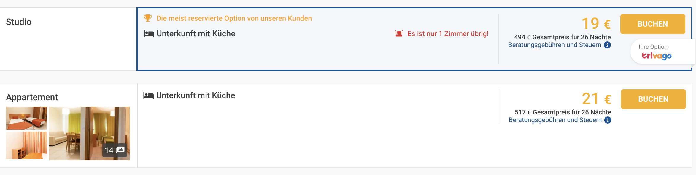 ⚠️Beachtet, dass sich die Preise besonders bei Last Minute Terminen schnell ändern können oder ausgebucht werden. Ggf. verschiebt man das Datum um einen Tag, vielleicht gibts dann noch Verfügbarkeiten!