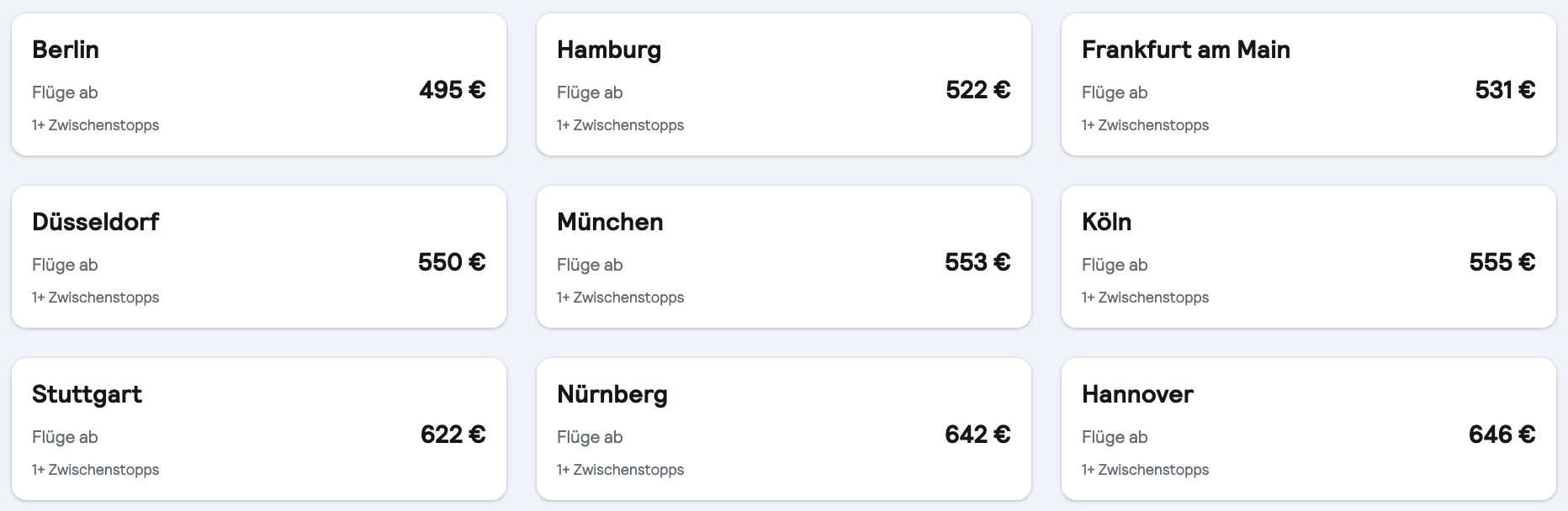 Flüge gibt es deutschlandweit bereits ab 495 Euro (Hin- und Rückflug!)