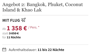 Optional könnt ihr auch noch ein paar Tage Bangkok mit reinnehmen, hier starten die Preise bei 1.358€ p.P. für 11 Nächte: