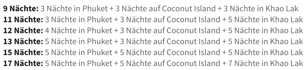 Je nachdem, für wie lange ihr eure Reise bucht, variiert die Dauer in den jeweiligen Hotels: