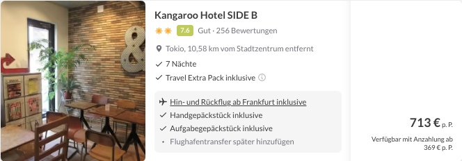 Das ist nur Reisebeispiel von vielen Möglichkeiten in Tokio. 👌 Ihr seht alle verfügbaren Optionen nach Preis sortiert, wenn ihr "ZUM DEAL" klickt.