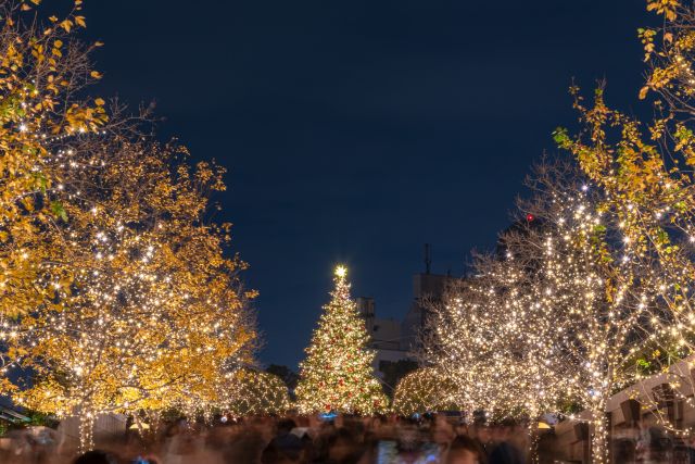 In Tokio glitzern die Häuserfassaden so oder so das ganze Jahr lang, nur im Dezember wird eben noch eine Schippe draufgelegt: Die Stadt verwandelt sich in ein Lichtermeer, insbesondere die Gegenden rund um Roppongi, Subibuya und entlang der Naka-dori Street. Auch der Yebisu Garden Palace erstrahlt samt Baum in einem ganz anderen Licht.