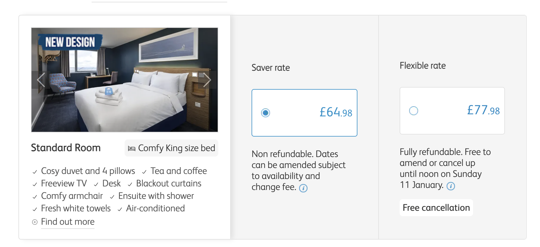 An unserem Beispieltermin konnten wir den günstigsten Preis bei Travelodge direkt finden. Klickt also auf "Unser niedrigster Preis" und lasst euch dann dorthin weiterleiten. Beachtet, dass euch hier der Preis in britischen Pfund angezeigt wird.