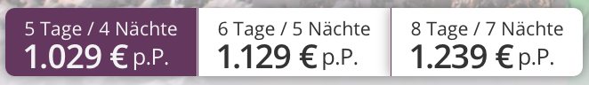 💤 Du kannst diese Reise in verschiedenen Längen buchen: 4, 5 oder 7 Nächte. Klicke auf der Angebotsseite einfach die entsprechende Reisedauer an.